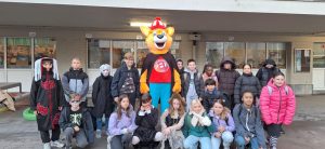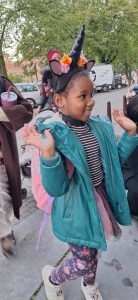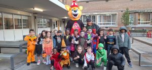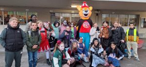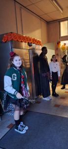 Net toen iedereen bekomen was van de schrik…werden onze leerlingen verwelkomd door Atje en de griezelige leerlingraad, compleet met enge muziek en huiveringwekkende sfeer!